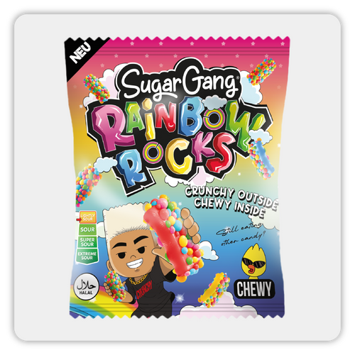 GELANTINE (Schwein), pflanzliche Öle (Palm, Palmkern, Palmolein, SOJA, Sonnenblume, Raps, Kokosnuss), Margarine (Palmöl, Wasser, VOLLMILCHPULVER, Salz, Aroma, Emulgatoren), gehärtete pflanzliche Öle (Palmkernöl, SOJAÖL), Sesampaste, Kadayif, Karamell, Trehalose, Maissirup, Maissirupfeststoffe, Maltodextrin, Maisstärke, modifizierte Stärke, Glukosesirup-Trockenerzeugnis, Dextrose, Fruktose, Invertzuckersirup, Melasse, Honig, Zitronensaft, Bananensaft aus Konzentrat, Mangosaft aus Konzentrat, Apfelsaft aus Konzentrat, Fruchtsäfte aus Konzentrat (Erdbeere, Schwarze Johannisbeere, Orange, Zitrone, Ananas), HASELNÜSSE, MANDELN, PISTAZIEN, ERDNÜSSE, SESAM, WALNÜSSE, EIKLAR, Hefe, Enzyme, Salz, Zwiebelpulver, Knoblauchpulver, Gewürze (Chili, Paprika, Petersilie, Meerrettich, Tomate), Chipotle-Pfeffer, Paprikaextrakt, Chiliextrakt, Zitronenaroma, Vanillin, Aromen, Emulgatoren (E322 [SOJA], E471, E473, E476, E491), Stabilisatoren (E332(ii), E414, E440), Säuerungsmittel (E270, E296, E297, E330), Säureregulatoren (E262, E283, E331, E339, E500, E503), Feuchthaltemittel (E306, E307, E420, E422), Verdickungsmittel (E407, E410, E1442), Konservierungsstoffe (E202, E211, E223), Trennmittel (E341), Überzugsmittel (E903), Antioxidationsmittel (E304, E306, E319, E321), Backtriebmittel (E500(ii), E503(i)), Geschmacksverstärker (E621, E627, E631), Farbstoffe (E100, E100(ii), E101, E102, E110, E120, E132, E133, E141, E150, E160a, E160b(ii), E160c, E162, E163).